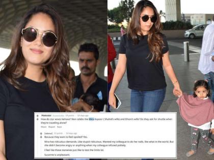 या उपक्रमाअंतर्गत ऑफिसर्सने दिलेल्या उत्तरानुसार कार्तिक आर्यन हा सगळ्यांशी मस्ती करतो तर जॅकलिन फर्नांडिस ही खूपच चांगली आहे. ती कधीच कोणत्याही गोष्टीची मागणी करत नाही. तसेच ती नेहमीच विमानतळावरील सगळ्या स्टाफचे आभार मानते. एकाने विचारले होते की, ज्या सेलिब्रेटींच्या पत्नी सेलेब्स नाहीत, त्या स्टाफशी कशाप्रकारे वागतात. यावर त्यांनी उत्तर दिले की, मीरा राजपूतच्या अजबच मागण्या असतात. एकदा तर तिने आमच्या एका स्टाफला नेलपेंट लावण्याविषयी विचारले होते. पण त्या स्टाफने नम्रपणे ही गोष्ट करण्यास नकार दिला होता. मात्र यावर मीरा चिडली नव्हती.