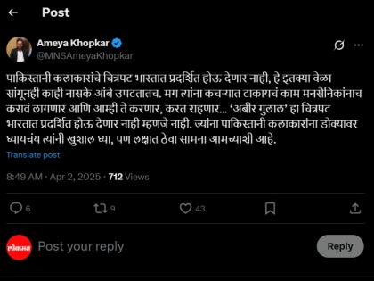 महाराष्ट्र नवनिर्माण चित्रपट सेनेचे अध्यक्ष अमेय खोपकर यांनी आपल्या एक्स अकाउंटवरून पोस्ट शेअर करत असं लिहलंय की, "पाकिस्तानी कलाकारांचे चित्रपट भारतात प्रदर्शित होऊ देणार नाही, हे इतक्या वेळा सांगूनही काही नासके आंबे उपटतातच. मग त्यांना कचऱ्यात टाकायचं काम मनसैनिकांनाच करावं लागणार आणि आम्ही ते करणार, करत राहणार… ‘अबीर गुलाल’ हा चित्रपट भारतात प्रदर्शित होऊ देणार नाही म्हणजे नाही. ज्यांना पाकिस्तानी कलाकारांना डोक्यावर घ्यायचंय त्यांनी खुशाल घ्या, पण लक्षात ठेवा सामना आमच्याशी आहे." अशा शब्दात त्यांनी आपल्या प्रतिक्रिया दिल्या आहेत.