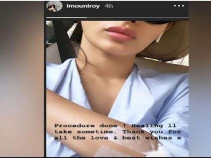 स्पॉट बॉयच्या वृत्तनुसार मौनीच्या हाताच्या कोपऱ्याला दुखापत झाली होती, ज्यामुळे तिला रुग्णालयात दाखल करण्यात आले होते. आता मौनी ठिक आहे.