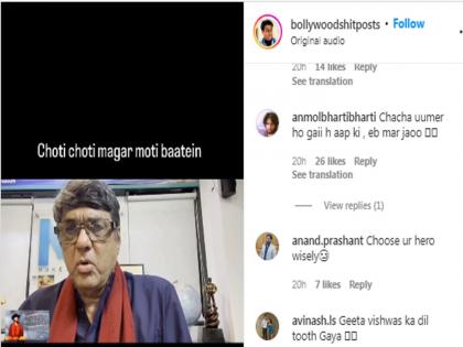 हा व्हिडीओ समोर आला आणि लोकांनी मुकेश खन्ना यांना फैलावर घेतलं. ‘किमान स्त्री शक्तीचा तरी मान ठेवायला हवा होता,’ अशा शब्दांत एका युजरने त्यांना सुनावलं. ‘माफ कर शक्तिमान पण यावेळी तू चुकलास,’ असं एका युजरने लिहिलं. ‘जेव्हा शक्ती आणि मान दोन्ही गोष्टी माणसाला सोडून जातात तेव्हा तो असं बोलू लागतो,’ अशी कमेंट एका युजरने केली. ‘शक्तिमान म्हातारपणात काहीही बरळतोय, आता तो सनकीमान झाला आहे,’ अशा शब्दांत एका युजरने आपला संताप व्यक्त केला. ‘ठीक आहे, आता आणखी एक व्हिडीओ बनव आणि सभ्य समाजातील मुलगा, यावर भाषण दे,’ अशी संतप्त कमेंट एका युजरने केली.
