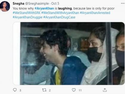 ‘पाहा, आर्यन खान हसतोय. चेह-यावर जराही पश्चाताप नाही. ड्रग्ज घ्यायची आणि काळजी करायची नाही, हेच त्याला शिकवलं गेलं का?’, अशी कमेंट एका युजरने केली आहे. तो हसतोय, कमाल आहे, अशी कमेंट अन्य एका युजरने केली आहे. तो हसतोय कारण त्याच्यापेक्षा कायदा गरिब आहे, हे त्याला ठाऊक आहे, अशी प्रतिक्रिया एका युजरने दिली आहे.