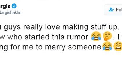 होय, twitterचा आधार घेत, नर्गिसने तिच्या व उदयच्या लग्नाची बातमी धुडकावून लावली आहे.Wow u guys really love making stuff up. now who started this rumor . I think u r dying for me to marry someone, असा खुलासा तिने केला आहे. एकंदर काय तर माझ्यात व उदयमध्ये काहीही नाही, याचा तिने नव्याने पुनरूच्चार केला आहे. आता खरे काय नि खोटे काय, हे नर्गिसलाच ठाऊक़ पण जगाच्या पाठीवर उदय चोप्रा इतका चांगला व्यक्ती मला भेटलेला नाही. उदय ज्याच्या कुणाच्या आयुष्यात असेल, ते त्याचे नशीब,असे मी म्हणेल. तो माझ्या आयुष्याचा भाग आहे आणि राहिल, असे नर्गिस एका मुलाखतीत म्हणाली होती. आता याचा अर्थ काय, हेही तिलाच ठाऊक़