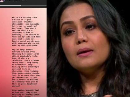 ‘हे लिहितांना मी मानसिक आणि शारिरीकदृष्ट्या एकदम फिट आहे. पण मला बोलायचे आहे. मी कुणाची बहीण आहे, कुणाची मुलगी आहे,हे बोलणारे काध्यानात घेत नाहीत. मी आयुष्यभर कष्ट केले. माझ्या कुटुंबाला माझा अभिमान वाटावा, असेच वागले. एखाद्या अफवेचा लोकांच्या आयुष्यावर काय परिणाम होईल, हे जाणून न घेता, तुम्ही लोकांबद्दल अफवा का पसरवता? कुणाच्या खासगी आयुष्याबद्दल बोलणे बंद करा. एखादी व्यक्ती हे सगळे सहन न झाल्याने स्वत:चे आयुष्य संपवेल, इतक्या स्तराला जाऊ नका,’ असे नेहाने या पोस्टमध्ये लिहिले.