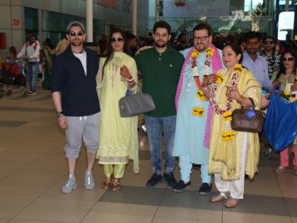 बॉलिवूड अभिनेता नील नितीन मुकेश उद्यपूरमध्ये झालेल्या शाही विवाहानंतर मुंबईत परतला आहे. मुंबईच्या डोमेस्टिक एअरपोर्टवर नीलला त्याची पत्नी रुक्मिणी सहाय आणि संपूर्ण परिवारसोबत उतरला.