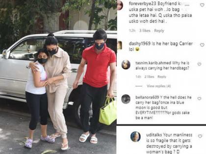 हा नेहमीच तिची बॅग कॅरी करतो. एखादवेळी समजू शकतो. पण दरवेळी? मर्द बन, असे लिहित एका युजरने रोहमनला ट्रोल करण्याच प्रयत्न केला. अन्य अनेक युजर्सनीही रोहमनला याच पद्धतीने ट्रोल केले. हे पाहून काही युजर्स रोहमनच्या बाजुने मैदानात उतरले. ‘आपकी मर्दानगी इतनी कमजोर है की, एक मर्द के हाथ में महिला का पर्स देखकर तबाह हो गया?’, अशा शब्दांत एका युजरने रोहमनला ट्रोल करणाºयांचा समाचार घेतला.