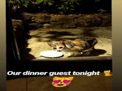 काही दिवसांपूर्वीच एकमेकांसोबत वेळ घालवतानाचा विराट-अनुष्काचा फोटो सोशल मीडियावर व्हायरल झाला होता. याशिवाय बीचवरील अनुष्काच्या बिकिनी लूकचीही खुप चर्चा झाली होती. त्यानंतर आता अनुष्काने तिच्या इन्स्टाग्रामवर त्यांच्या घरी आलेल्या छोट्या पाहुणीचा फोटो शेअर केला. या फोटोमध्ये एक मांजर दिसत आहे. जी दूध पित आहे. अनुष्का शर्माने हा फोटो शेअर करताना लिहिलं, ‘आमची आजची डिनर गेस्ट’