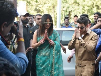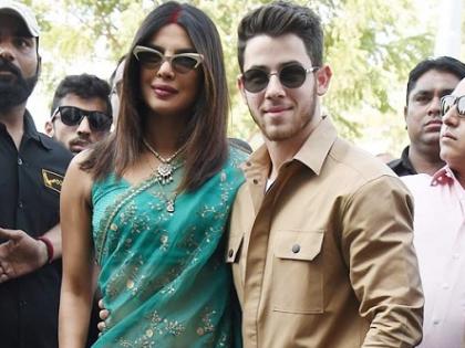 यावेळी प्रियांका कमालीची सुंदर दिसत होती. हिरव्या रंगाची साडी, हातातला चुडा, भांगातील कुंकू अशा सौभाग्यलंकारासह प्रियांका दिसली. तर निक कॅज्युअल लूकमध्ये दिसला.