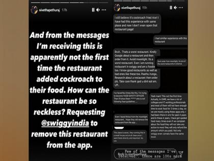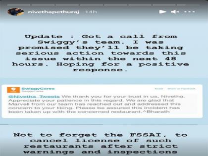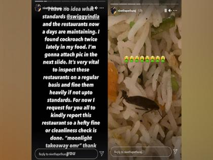 निवेथा पेथुराजने बुधवारी सोशल मीडियावर आपल्या जेवणाचे फोटो शेअर केले. हे जेवण तिने स्विगीवरून ऑर्डर केलं होतं. बाहेरून मागवलेल्या जेवणात झुरळ सापडले. निवेथा ही दाक्षिणात्य अभिनेत्री असून तिने सोशल मीडियाद्वारे या स्विगीचा चांगलाच क्लास घेतला आहे.