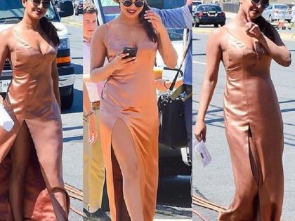 #Isntitromantic टाईम करताच तुम्हाला प्रियांकांचे सगळे व्हायरल फोटो पाहता येऊ शकतील. या फोटोंमध्ये शॉटसाठी रेडी झालेली प्रियांका दिसते आहे. हाय स्लिट डस्टी पिंक कॅमी गॉऊनमध्ये प्रियांकाचा हा अंदाज बघण्यासारखा आहे.