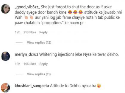 ‘हिरोईन बनण्याची कोणतीही क्वालिटी नाही या सर्वांमध्ये, पण अॅटिट्यूड तर पाहा,’असं एका युजरने लिहिलं. ‘तू चित्रपटात येशील तेव्हा आम्हीही तुला असाच अॅटिट्यूड दाखवू,’अशी कमेंट अन्य एका युजरने केला. ‘कारचा दरवाजा लावायलाही विसरली, जणू तिचा बाबा येणार आहे दरवाजा लावायला’, अशा शब्दांत एका युजरने न्यासाला ट्रोल केलं.