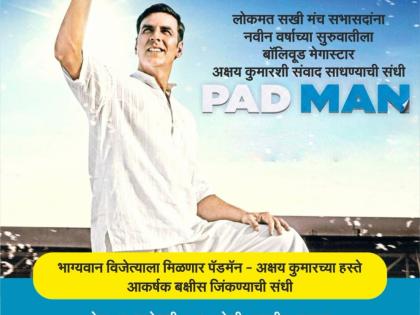 ब लिवूडचा खिलाडी अक्षयकुमार अतिशय हटके अंदाजात आपल्या चाहत्यांसमोर जाण्यास सज्ज आहे. होय, आम्ही त्याच्या आगामी ‘पॅडमॅन’ या चित्रपटाबद्दल सांगत असून, तो या चित्रपटाच्या माध्यमातून पुन्हा एकदा एका महत्त्वपूर्ण विषयावर प्रबोधन करताना दिसणार आहे. सध्या चाहत्यांना त्याच्या या चित्रपटाची प्रतीक्षा असून, अनेकांना चित्रपटातील त्याच्या भूमिकेबद्दल जाणून घेण्याची तीव्र इच्छा आहे. अशात नव्या वर्षाच्या सुरुवातीलाच ‘लोकमत’ने सखी मंच सभासदासाठी हा योग जुळून आणला असून, मेगास्टार अक्षयकुमारसोबत त्यांना समोरासमोर संवाद साधता येणार आहे.