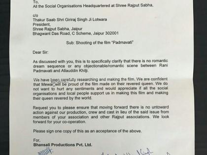 त्यांनी लिहिलेय की, ‘पद्मावती’ या माझ्या चित्रपटाबद्दल अनेक गैरसमज बाळगले जात आहेत. मी नेहमीसाठी हे गैरसमज दूर करू इच्छितो. ‘पद्मावती’ हा स्वत:च्या आत्मसन्मानासाठी लढणाºया एका राजपूत राणीची कथा आहे. चित्रपटाच्या स्क्रिप्टमध्ये कधीही राणी पद्मावती व अलाऊद्दीन खिल्जी यांच्यावर चित्रीत रोमॅन्टिक गाणे नव्हते. आम्ही मीडियाद्वारे अनेकदा यासंदर्भात स्पष्टीकरण दिले आहे. याऊपर चित्रपटाचे चित्रीकरण हाणून पाडण्याच्या दुर्दैवी घटना घडत आहेत. कलाकार या नात्याने अभिव्यक्ति स्वातंत्र काय, हे मी जाणतो. मात्र या स्वातंत्र्यासोबत येणाºया जबाबदाºयांचे भानही मी ठेवतो. मी काही राजपूत नेत्यांना भेटलो. माझ्या भूमिकेला या नेत्यांचे समर्थन आहे.