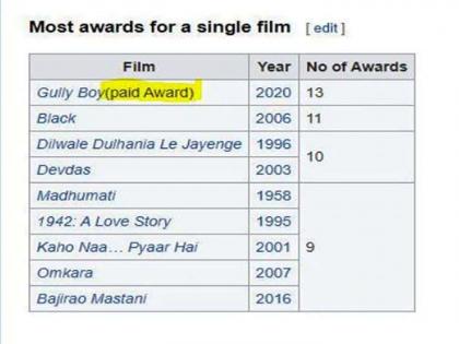 Filmfare 2020 : गली बॉयने विकत घेतले फिल्मफेअर पुरस्कार ? विकीपीडियात लिहिण्यात आले 'पेड'