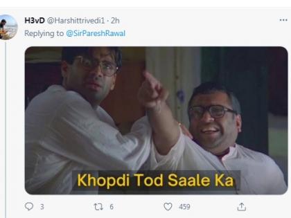 त्यांच्या या ट्विटवर चाहत्यांनी मजेदार कमेंट्स केल्यात. यानंतर यावरचे अनेक मीम्सही व्हायरल झालेत. ‘हेरा फेरी’ आणि ‘हेरा फेरी २’ या चित्रपटातील परेश रावल यांच्या बाबुरावच्या भूमिकेने सगळ्यांनी मने जिंकली. बाबुरावची धमाल कॉमेडी प्रेक्षकांच्या अजून ही लक्षात आहे.