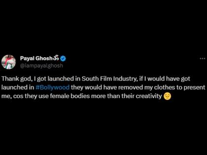 "धन्यवाद देवा, मला साऊथ फिल्म इंडस्ट्रीने लॉन्च केलं. जर, बॉलिवूड इंडस्ट्रीने मला लॉन्च केलं असतं तर त्यांनी लॉन्च करण्यापूर्वीच माझे कपडे उतरवले असते. कारण, बॉलिवूडमध्ये टॅलेंटपेक्षा स्त्रीच्या शरीराला जास्त महत्त्व दिलं जातं", अशी पोस्ट पायलने केली होती.