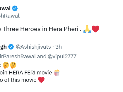 परेश रावल हे सध्या ट्विटरवर चांगलेच सक्रीय आहेत. परेश रावल यांना एका चाहत्याने टॅग करुन लिहिलं की, "पुन्हा एकदा हेरा फेरीमध्ये मध्ये जॉईन होण्याचा विचार करा, तुम्ही या सिनेमाचे हिरो आहात.." यावर परेश रावल यांनी चाहत्याला रिप्लाय करताना लिहिलं की, "नाही... या सिनेमात एकूण तीन हिरो आहेत." असं परेश यांनी एका वाक्यात उत्तर देऊन 'हेरा फेरी'चे इतर सहकलाकार अर्थात अक्षय कुमार, परेश रावल यांच्याविषयी आदर व्यक्त केला. पण या उत्तरावरुन परेश रावल 'हेरा फेरी ३'मध्ये परतणार नाहीत, असंच दिसतंय.