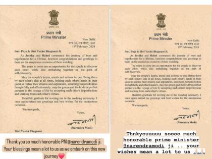 पंतप्रधान मोदींनी रकुल प्रीत-जॅकी भगनानी या नवविवाहित दाम्पत्याला पत्राद्वारे दिल्या शुभेच्छा!