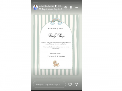 मावशी बनलेल्या प्रियंका चोप्राने सोशल मीडियावर आपली बहीण परिणीती आणि मेहुणा राघव यांच्यासाठी एक खास मेसेज शेअर केला. परिणीती आणि राघवची पोस्ट शेअर करत प्रियंकाने कॅप्शनमध्ये लिहिले, "परिणीती आणि राघव यांना खूप खूप शुभेच्छा".