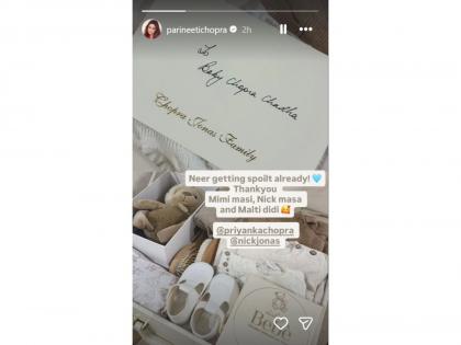परिणीतीने तिच्या सोशल मीडिया अकाउंटवर प्रियंका आणि निकने पाठवलेल्या गिफ्ट्सचा फोटो शेअर केला आहे. या फोटोमध्ये लहान मुलांची खेळणी, कपडे आणि इतर अनेक आकर्षक वस्तू ठेवलेल्या दिसत आहेत. हा फोटो शेअर करताना परिणीतीने एक मजेदार आणि प्रेमळ कॅप्शन लिहिलं आहे. तिने लिहिलं की, "नीर आत्तापासूनच बिघडत चालला आहे. मिमि मावशी, निक आणि मालती दीदी, तुमचे खूप खूप धन्यवाद!" परिणीतीची ही पोस्ट तिच्या चाहत्यांना खूप आवडत आहे आणि ते त्यावर भरभरून कमेंट्स करत आहेत.