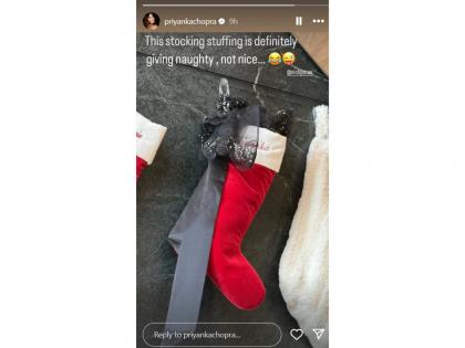 प्रियंका चोप्राने तिच्या इंस्टाग्राम स्टोरीजवर तिच्या आणि निकच्या स्टॉकिंग्जचा एक फोटो शेअर केला आणि त्याला कॅप्शन दिले, 'हे स्टॉकिंग स्टफिंग नक्कीच खोडकर आहे, चांगला नाही...' प्रियंका चोप्रा आणि निक जोनास त्यांची मुलगी मालती मेरी चोप्रासाठी खरेदी करताना दिसले. ऑनलाइन व्हायरल होत असलेल्या व्हिडिओमध्ये प्रियंका पती निकसोबत शॉपिंग करताना मालतीचा हात धरताना दिसत आहे. यादरम्यान, मालती प्रियंकाचा हात खेचून तिला एका दुकानात ओढताना दिसली.