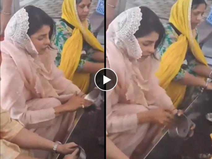 बिझी शेड्युलमधून वेळ काढत प्रियांका सुवर्ण मंदिरात नतमस्तक झाली. यावेळी तिने पंजाबी ड्रेस परिधान केला होता. डोक्यावर ओढणी घेत श्री गुरू ग्रंथ साहिब यांच्या चरणी प्रियांका नतमस्तक झाल्याचं पाहायला मिळालं. पण, फक्त दर्शन घेऊन प्रियांका थांबली नाही. तर तिने त्यानंतर सुवर्ण मंदिरात सेवाही केली. आशीर्वाद घेतल्यानंतर प्रियांकाने लंगर हॉलमध्ये काही वेळ भांडी घासली. याचा व्हिडीओ सोशल मीडियावर व्हायरल झाला आहे. अभिनेत्रीच्या साधेपणाचं सर्वत्र कौतुक होत आहे.