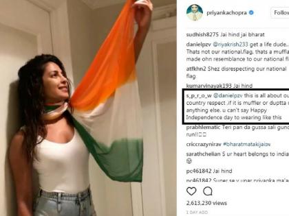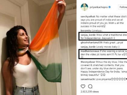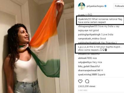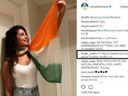 प्रियांकाने भारतीय ध्वजाचा अपमान केला आहे, असे काही नेटिजन्सने लिहिले. ‘तिरंग्याला नमन करायला शिक, त्यासोबत खेळू नको,’ असे एका युजरने लिहिला. एका युजरने तर प्रियांकाचे चांगलेच कान टोचले. ‘हा भारतीय ध्वज आहे, तुझा ड्रेस नाही,’ अशी बोचरी कमेंट त्याने केली.