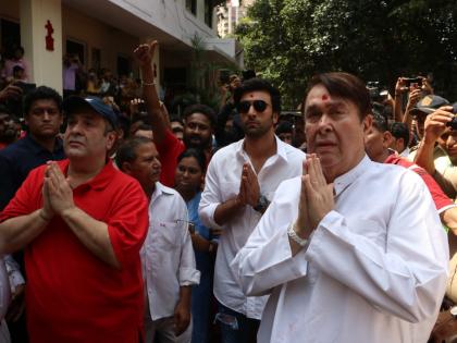 रणबीर कपूर, रणधीर कपूर, राजीव कपूर ढोल-ताशाच्या गजरात आर. के. स्टुडिओमधील बाप्पाला अखेरचा निरोप दिला. यावेळी सगळे कपूर कुटुंब प्रचंड भावूक झालेले दिसले. आर. के. स्टुडिओचा शेवटचा गणेशोत्सव असल्याने रणबीरसकट सगळ्यांनाच भावना रोखणे अशक्य झाले.