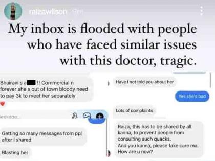 इतकेच नाही तर, माझ्या या पोस्टनंतर याच डॉक्टरकडे उपचार घेणा-या व आता भोगणा-या अनेकांचे मला मॅसेज येत आहे. माझ्या इनबॉक्समध्ये मॅसेजचा पूर आला आहे, असा दावा तिने केला आहे.