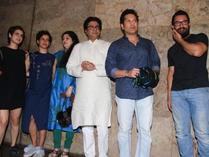आ िरच्या दंगल चित्रपटाच्या स्क्रीनिंगला आमिरचे दोन जवळच्या व्यक्ती उपस्थित होत्या मात्र दोघांमध्ये काही तरी बिनसल्यासारखे दिसले. आम्ही तुम्हाला सांगत आहोत मनसे अध्यक्ष राज करे आणि मास्टर ब्लास्टर सचिन तेंडुलकरबद्दल. राज ठाकरे आणि सचिन तेंडुलकर यांच्यातील मैत्री सर्वश्रुत आहे.आमिरच्या प्रत्येक चित्रपटाच्या स्क्रीनिंगला हे दोघे अवर्जुन उपस्थित असतात. मात्र यावेळी यादोघांमध्ये काही तरी खटकल्यासारख दिसत होते.