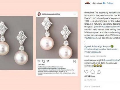अलीकडे रिद्धिमा कपूर साहनीने फेस्टिवल ज्वेलरी कलेक्शन जारी केले होते. या कलेक्शनमध्ये डायमंड आणि पर्लने बनलेल्या ईअररिंग्सचा समावेश होता. यातील एका ईअररिंगचे डिझाईन रिद्धिमाने आपल्या सोशल अकाऊंटवर पोस्ट केले होते. पण ‘डाईट सब्या’ नामक इन्टाग्राम अकाऊंटवरून रिद्धिमावर नक्कल केल्याचा आरोप केला गेला होता. डाईट सब्याने आपल्या अकाऊंटवर दोन फोटो शेअर केले होते. यातील एकात ओरिजनल ईअररिंग होता आणि दुसऱ्या फोटोत रिद्धिमाची पोस्ट होती. Kokichi Mikimotoला जगात ‘पर्ल किंग’ नावाने ओळखले जाते. १९१६ पासून काम करत असलेले हे ब्रँड एक बेंचमार्क आहे, असेही डाईट सब्याने म्हटले होते.