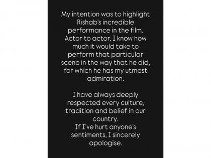 रणवीर सिंगने इन्स्टाग्राम स्टोरीवर पोस्ट करुन लिहिलंय की, ''माझा हेतू 'कांतारा' सिनेमातील ऋषभच्या अविश्वसनीय अभिनयाची दखल घेणं हा होता. एक अभिनेता म्हणून, मला माहीत आहे की, त्याने ज्या पद्धतीने तो विशिष्ट प्रसंग सादर केला, त्यासाठी त्याला किती मेहनत घ्यावी लागली असेल आणि म्हणूनच माझ्या मनात त्याच्याबद्दल खूप आदर आहे. मी नेहमीच आपल्या देशातील प्रत्येक संस्कृतीचा, परंपरेचा आणि श्रद्धेचा मनापासून आदर केला आहे. कोणाच्याही भावना दुखावल्या असल्यास, मी नम्रपणे माफी मागतो.''