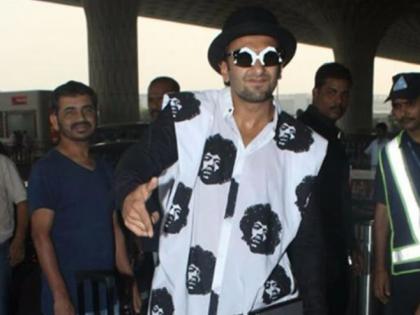 ब लिवूडचा सुपरस्टार रणवीर सिंग हा जिथे जातो तिथे आपल्या विचित्र ड्रेसमुळे किंवा आपल्या कारनाम्यांमुळे सर्वांचीच मने जिंकतो. त्यातच त्याचा पोशाख हा नेहमीच चर्चेचा विषय ठरत आला आहे. रणवीर आपल्या रंगील्या कपड्यांसाठी ओळखला जातो. एकदा तर चक्क रणवीर कंडोम ड्रेसमध्ये बघावयास मिळाला होता. आता पुन्हा एकदा रणवीर अशाच काहीशा ब्लॅक अॅण्ड व्हाइट स्टायलिश ड्रेसमध्ये एअरपोर्टवर स्पॉट झाला. वृत्तानुसार, रणवीर दिल्लीला जात होता. यावेळी रणवीरने नी लेंथचा व्हाइट शर्ट विद ब्लॅक स्लीव्स घातला होता. यावेळी त्याने ब्लॅक जॉगरही घातला होता. तसेच व्हाइट स्नीकर्समध्ये रणवीर खूपच विचित्र दिसत होता. रणवीर या ड्रेसमध्ये खूपच चमकत होता. त्याचा हा विचित्र ड्रेस पाहुन चाहत्यांनी त्याच्यासोबत सेल्फी घेण्याचा आनंद घेतला.