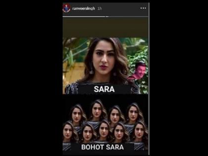 रणवीरच्या मस्तीखोर स्वभावाशी तर सर्व परिचित आहेतच, मात्र साराही काही कमी नाही. सोशल मीडियावर रणवीर आणि साराच्या इन्स्टास्टोरीवरून याचा अंदाज लावता येतो. रणवीरने साराच्या एका फोटोला मजेशीर कॅप्शन देऊन इन्स्टाग्रामवर शेअर केला होता. यावर सारा गप्प बसणाऱ्यांमध्ये नव्हतीच. तिनेही तिच्या इन्स्टाग्रामवर एक मजेशीर फोटो शेअर करून रणवीरला उत्तर दिले आहे. त्या दोघांच्याही या इन्स्टास्टोरीचे स्क्रिन शॉट व्हायरल झाले आहेत. रणवीर त्याच्या अतरंगी कपड्यांच्या स्टाईलमुळे चर्चेत असतो. नेमका हाच धागा पकडून साराने रणवीरला त्याच्याच स्टाईलमध्ये उत्तर दिले आहे.
