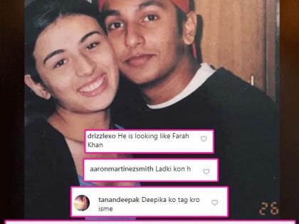 हा तर फराह खानसारखा दिसतोय, असे या फोटोवर कमेंट करताना काहींनी लिहिलीय. तर काहींनी ही दुसरी मुलगी कोण? असा सवाल करत या फोटोतील रणवीरची मजा घेतली आहे. काहींनी या फोटोत दीपिका पादुकोणला टॅग करण्याची मागणी केली आहे. दीपिका, हा बघ तुझा नवरा, असे काहींनी टिंगल करत लिहिले आहे.