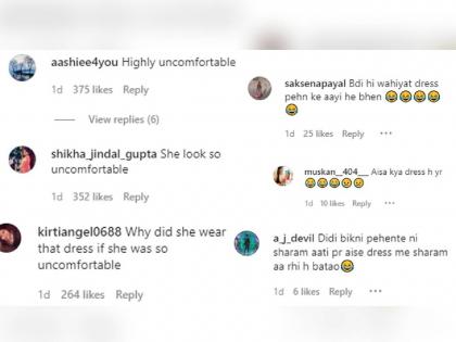 "जर अनकन्फर्टेबल वाटतंय तर असा ड्रेस घातलाच का?", असा प्रश्न एका नेटकऱ्याने विचारला आहे. तर, "प्रचंड वाह्यात ड्रेस आहे", यांना बिकिनी परिधान केल्यावर लाज वाटत नाही.पण, असे ड्रेस घातले की लाज वाटते", अशा किती तरी कमेंट या पोस्टवर आल्या आहेत.