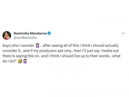 रश्मिका मंदानेन एक्स (ट्विटर) अकाउंटवर यावर प्रतिक्रिया देताना म्हटले की, अशा चर्चेवर मी स्वतः हैराण आहे. हे सर्व पाहिल्यानंतर मला वाटते की यावर मी प्रत्यक्षात विचार केला पाहिजे. जर निर्माते याबद्दल प्रश्न विचारतील तेव्हा मी म्हणेन सर, मीडिया हे सर्व बोलत आहेत आणि मला वाटतं त्यांच्या म्हणणं खरं करायला पाहिजे. तुम्हीच मला सांगा की मी काय केले पाहिजे. मानधन वाढवल्याच्या चर्चेला अभिनेत्रीने पूर्णविराम लावला आहे.