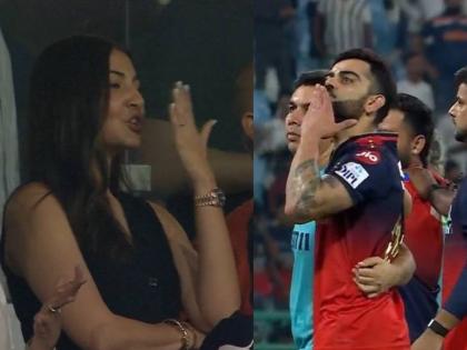 RCB ने सामना जिंकताच कोहलीने सर्वांसमोर केलं फ्लाइंग किस, अनुष्काने खास अंदाजात दिला रिप्लाय