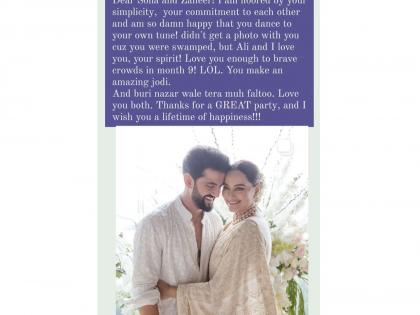 रिचा पुढे लिहिते, "तुम्ही एक अद्भुत जोडपे आहात. मी माझ्या गर्भधारणेच्या ९ व्या महिन्यात आहे. अशा परिस्थितीत इतक्या गर्दीचा सामना करुनही मी खूप आनंदी आहे. पुढे सोनाक्षी-जहीरला लग्नावरुन ट्रोल करणाऱ्यांना रिचा म्हणते, "बुरी नजर वाले तेरा मुंह फालतू. माझं तुम्हा दोघांवरही प्रेम आहे. एका अद्भुत मेजवानीसाठी धन्यवाद. शेवटी मी तुम्हाला आयुष्यभरासाठी आनंदी शुभेच्छा देते."