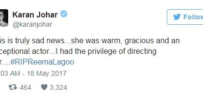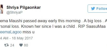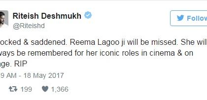 रिमा लागू यांना सेलिब्रिटींनी दिली टिवटरवरून श्रद्धांजली
