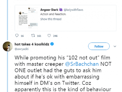 ‘ऋषी कपूर सर्रास लोकांना आॅनलाईन शिव्या घालतात आणि प्रत्येक न्यूज चॅनेल व एंटरटेंनमेंट पोर्टल त्यांच्या चित्रपटांचे प्रमोशन आणि त्यांच्या मुलाखती घेण्यात मश्गुल आहेत. जणू त्यांचे वागणे सर्वसामान्य असावे. कुणीही त्यांना त्यांच्या डर्टी मॅसेजबद्दल जाब का विचारू नये. भारत द्वेष आणि तिरस्काराच्या भावनेने आजारी आहे. फिल्म कम्युनिटीतून बाहेर पडून या मुद्यावर कुणी समोर का येत नाही? कारण ते केवळ ऋषी कपूर आहेत म्हणून?’ असे अदितीने म्हटले आहे. आता हे प्रकरण पुढे कसे वळण घेते, ते बघूच.
