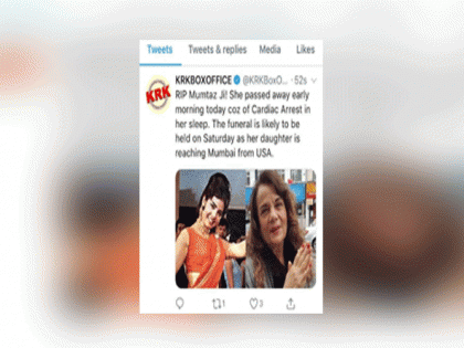 दरम्यान, काही दिवसांपूर्वी स्वयंघोषित क्रिटिक्स केआरके यानेदेखील ट्विट करून मुमताज यांच्या निधनावर शोक व्यक्त केला होता. केआरकेने त्याच्या ट्विटमध्ये लिहिले होते की, ‘मुमताज यांचे निधन झाले. अशी दु:खद घटना तुम्हा सर्वांसोबत शेअर करण्यासाठी माफी मागतो.’ दरम्यान, व्हायरल होत असलेली पोस्ट तथ्यहीन असल्याचा उलगडा त्यांच्या मुलीने केल्याने चाहत्यांमध्ये समाधान व्यक्त केले जात आहे.