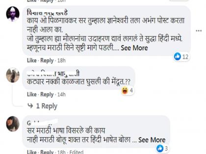 पिळगावकर, भगवद्गीतेत 600 पेक्षा अधिक श्लोक आहेत. तुम्ही ‘कट्यार’मध्ये मुस्लिम गायकाची भुमिका केलीत, त्या भुमिकेतून बाहेर या आणि कुणाचेही दाखले देऊ नका, अशी कमेंट एका फेसबुक युजरने केली. श्रीकृष्णाने अख्खी गीता संस्कृतमध्ये सांगितली, त्याच श्रीकृष्णाच्या जन्म तिथीच्या शुभेच्छा उर्दू भाषेत दे आहात? काही विचार करून तरी शुभेच्छा द्यायच्या, असे एका युजरने लिहिले. तुमच्याकडून हीच नकली धर्मनिरपेक्षता अपेक्षित होती, अशा शब्दांत एका युजरने सचिन यांना ट्रोल केले. अहो सचिन, तुम्ही महाराष्ट्रात जन्माला आलात, मराठीचा वापर करा, असा सल्ला एकाने त्यांना दिला. कट्यार नक्की काळजात घुसली की मेंदूत, अशी कमेंट एकाने केली.