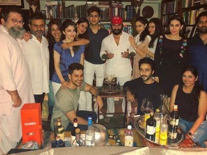 सावत्र आई करिना कपूर त्याच्यांसोबत अगदी फ्रेंडली पोज देताना दिसली. अगदी जवळचे नातेवाईक व मित्रमंडळींच्या उपस्थितीत सैफचा ग्रॅन्ड वाढदिवस साजरा करण्यात आला.सैफच्या वाढदिवसाची करिनाने जय्यत तयारी केली होती.