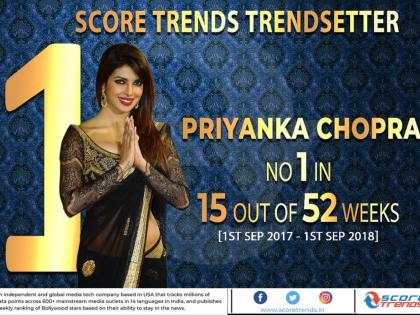 प्रियांका चोप्राला दीपिका पादुकोण आणि आलिया भट्टची तगडी स्पर्धा होती. मात्र 52 आठवड्यांमधल्या 15 आठवडे लोकप्रियतेत नंबर वन स्थानी राहिल्याने वर्षभरात सर्वाधिक लोकप्रिय राहिलेली प्रियांका ट्रेंडसेटर ठरलीय.