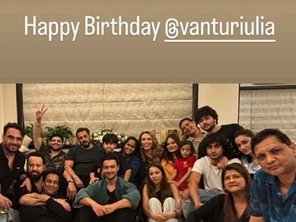 यूलिया वंतूरने सोशल मीडियावर एक फोटो शेअर केला आहे. अतुल अग्निहोत्रीची स्टोरी तिने रिपोस्ट केली आहे. यामध्ये सलमान खानसह अर्पिता, अलविरा, शेरा, आयुष शर्मा, सोहेल खानचा मुलगाही दिसत आहे. तसंच इतर मित्रपरिवार आहे. तर बर्थडे गर्ल यूलिया मध्यभागी बसली आहे. यूलियाचं सलमानच्या कुटुंबासोबत छान नातं आहे. या फोटोसोबत तिने आय लव्ह यू म्हणत हार्ट इमोजीही शेअर केला आहे.