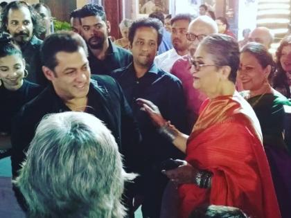 ब लिवूड स्टार सलमान खान सध्या त्याच्या आगामी ‘भारत’ या चित्रपटाची तयारी करीत आहे. त्यामुळे तो सध्या खूपच व्यस्त आहे. मात्र अशातही त्याने वेळात वेळ काढून आपल्या एका जवळच्या मित्राच्या लग्नात हजेरी लावली. खरं तर सलमान नातेसंबंध जपण्यासाठी ओळखला जातो. मैत्री असो वा दुश्मनी, सलमान अखेरपर्यंत कायम ठेवतो. भाईजानचा असाच काहीसा अंदाज यावेळेस बघावयास मिळाला. त्याने सर्व काम सोडून श्वेता कौशिक आणि बॉबच्या लग्नात हजेरी लावली. या लग्नसमारंभातील सलमानचे बरेचसे फोटो सध्या सोशल मीडियावर व्हायरल होत आहेत. फोटोमध्ये सलमान खूपच खूश दिसत आहे. सलमानच्या चेहºयावर सातत्याने स्माइल दिसत आहे. यावेळी सलमानने ब्लॅक सूट परिधान केला होता.
