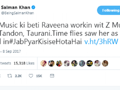 सलमानने रवीनाचे या म्युझिक व्हिडिओला प्रमोट करताना स्वत:च्या सोशल अकाऊंटवर एक सुंदर पोस्ट लिहिली आहे. ‘ही रवीना टंडन नाही तर रवीना तौरानी आहे. वेळ कसा निघून जातो, कळतही नाही. ‘जब प्यार किसी से होता है’ या चित्रपटावेळी रवीना एक लहानशी मुलगी होती,’असे त्याने लिहिलेय. सलमानने बघितलेली ती चिमुकली आता बरीच मोठी झालीय आणि बॉलिवूडमध्ये आपले स्थान निर्माण करण्यासाठी सज्ज झाली आहे. सलमान खानने अलीकडे तौरानी फ्रेंचाइजीचा ‘रेस3’ साईन केला आहे. आता असे असताना निर्मात्याच्या मुलीला प्रमोट करणे तर बनतेच. सलमानने तेच केले. निर्मात्याच्या मुलीला अर्थात रवीनाला त्याने प्रमोट केले. अर्थात हे करताना रवीनाचे बालपणही त्याला आठवले.