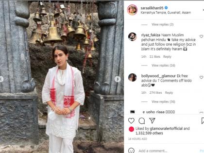 फोटोंमध्ये सारा पांढ-या रंगाच्या सलवार सूटमध्ये आहे. गळ्यात आसामचा पारंपरिक स्कार्फ आहे. माथ्यावर टिळा आहे. साराचे फोटो पाहून काही लोकांनी तिचे कौतुक केले. पण काहींनी मात्र तिला ट्रोल करायला सुरूवात केली. तिच्या धर्मावर प्रश्नचिन्ह उपस्थित केले.