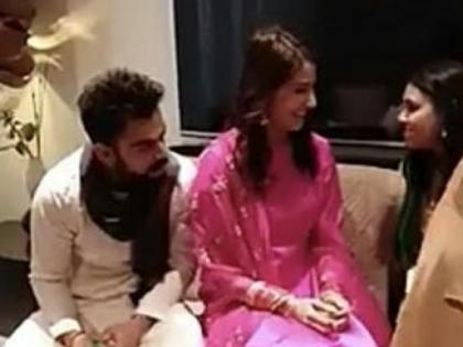 सासरी पोहोचलेल्या अनुष्काचा एक फोटो सध्या वेगाने व्हायरल होतो आहे. यात अनुष्का सासरच्या मंडळींसोबत गप्पा-गोष्टी करण्यात बिझी आहे. अनुष्काच्या शेजारीच विराट बसलेला आहे. त्याने कुर्ता पायजामा घातलेला आहे तर अनुष्का फुल्ल टू देसी लूकमध्ये आहे. तिने पिंक कलरचा सलवार सूट कॅरी केला आहे. नव्या नवरीने कसे असावे, हे भान अनुष्काला आहे, हेच यावरून म्हणावे लागले.
