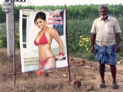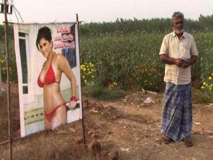 आयडीयाची कल्पना...! म्हणून आंध्रच्या शेतकऱ्यानं शेतात लावलं सनी लिओनीचं बिकिनी पोस्टर